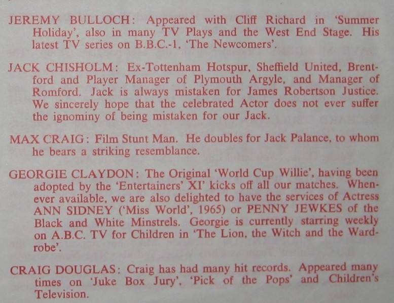 1967 charity programme included player profiles. List includes Jeremy Bulloch from Star Wars and